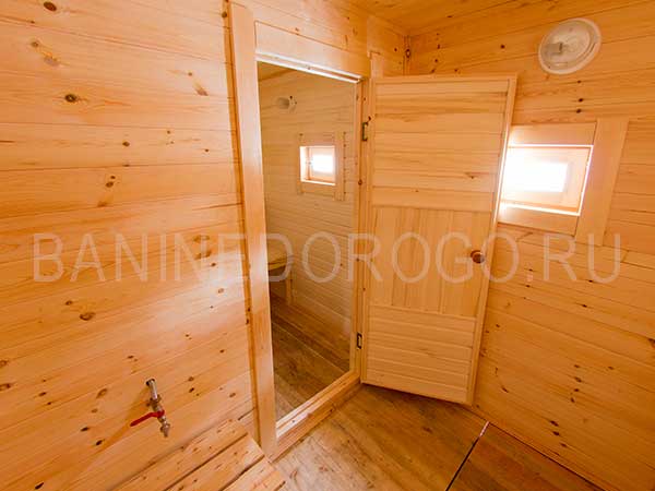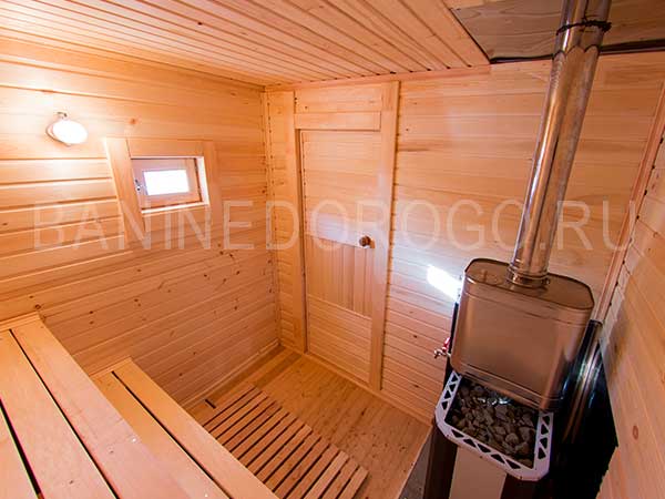 Печь, бак для горячей воды объемом 60 литров входит в стоимость бани